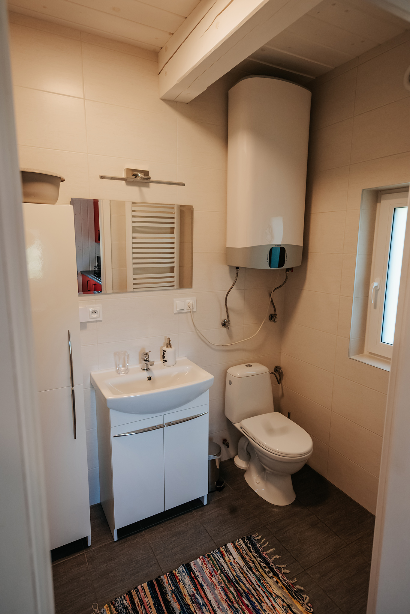 Do dyspozycji gości w każdym domku są takie sprzęty jak lodówka z zamrażalnikiem, zmywarka, pralka, czajnik elektryczny, mikrofalówka, płyta indukcyjna, żelazko, suszarka do włosów, deska do prasowania, suszarki na pranie, odkurzacz, telewizor oraz wszystkie niezbędne naczynia, sztućce i garnki.